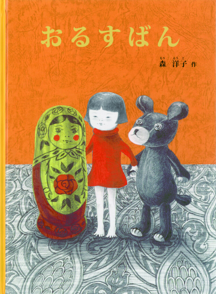 At-chan is at home alone for the first time, while her mother pays a visit to At-chan’s ailing grandmother. At first, At-chan plays with her blocks and ventures into the cool, dark kitchen to get herself a glass of water. Gradually, however, she becomes anxious, finally hiding under the kotatsu, a heated table with a quilt on top. In the kitchen, pots, pans and vegetables start exercising and dancing. They are having so much fun that At-chan crawls out from her hiding place to join them. Meticulous monochrome pencil drawings accentuated with red and orange convey both the child’s anxiety and her vivid imagination. The depictions of nostalgic vintage items, such as a black rotary-dial phone and treadle sewing machine, have a quaint charm. (OKUYAMA)