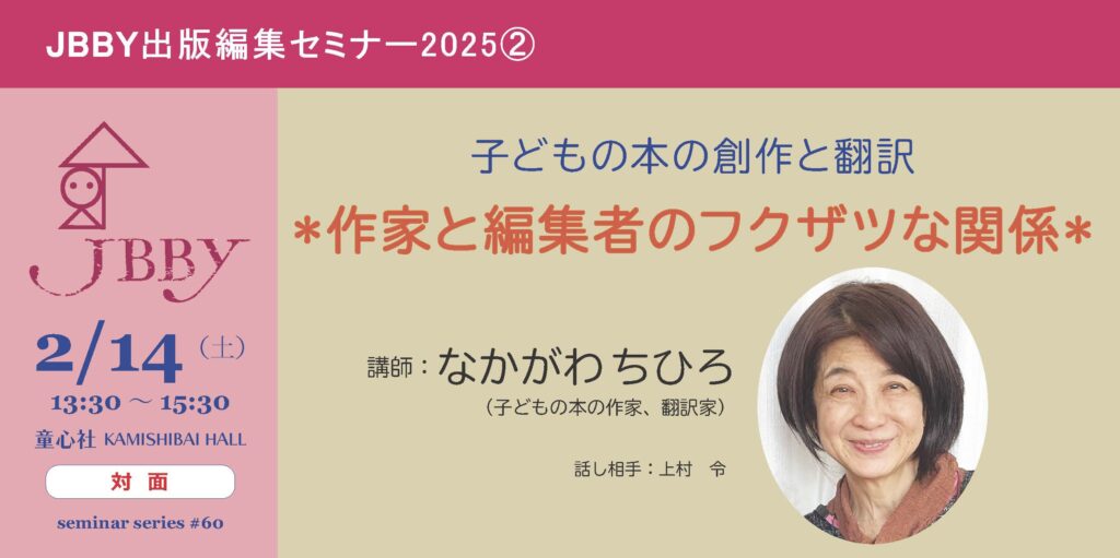 【★受付開始:1月14日(水)10時から★】2/14 JBBY出版編集セミナー2025②なかがわちひろ「子どもの本の創作と翻訳 *作家と編集者のフクザツな関係*」(①対面と②アーカイブ)